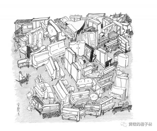 文中配图都是书中配图,金宇澄自己画的,他说自己是野生画家,结果这些画比书还走红,还单独开了画展。