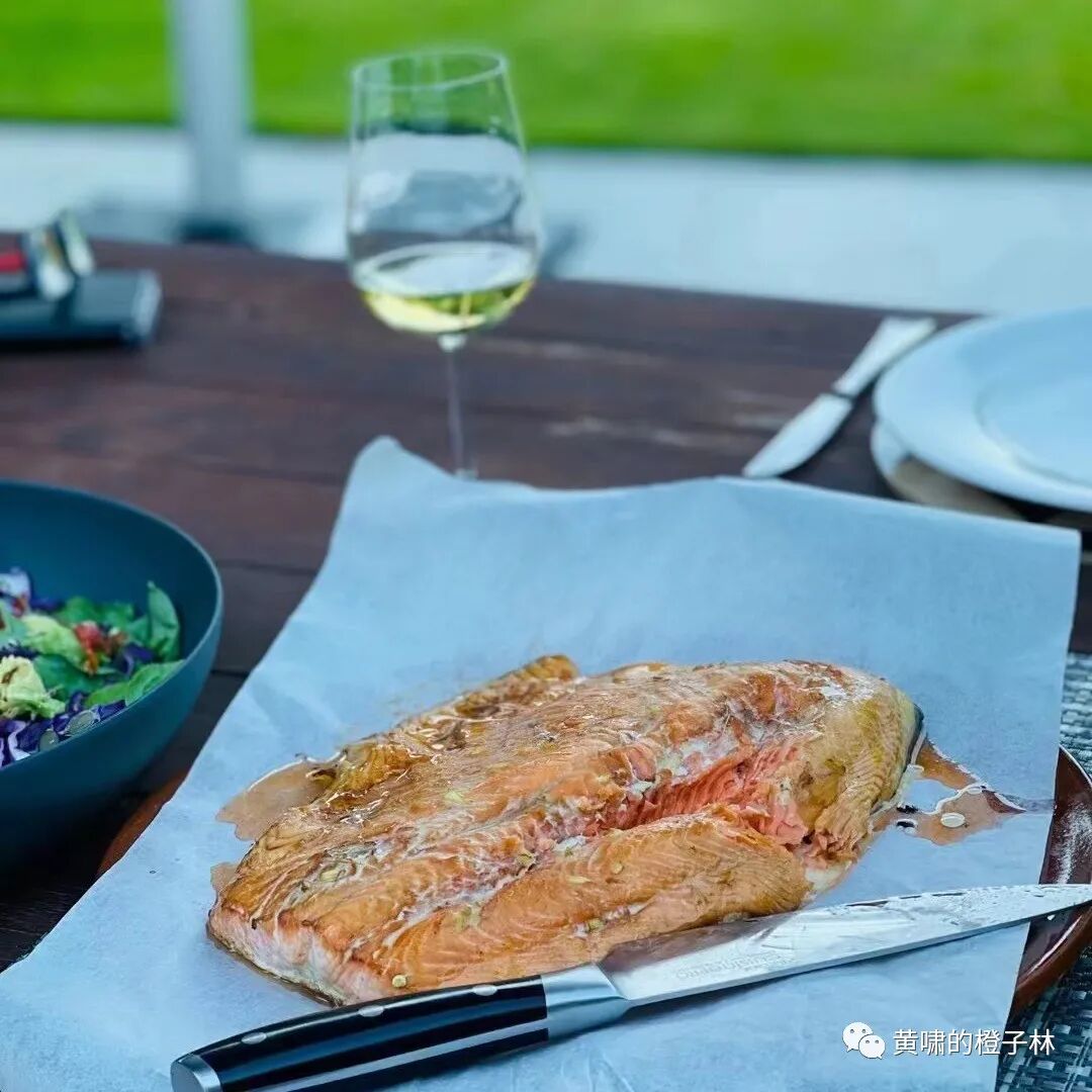晚餐主菜是huge自己打来的三文鱼,好鲜!今天冬至,没饺子吃,又一年。