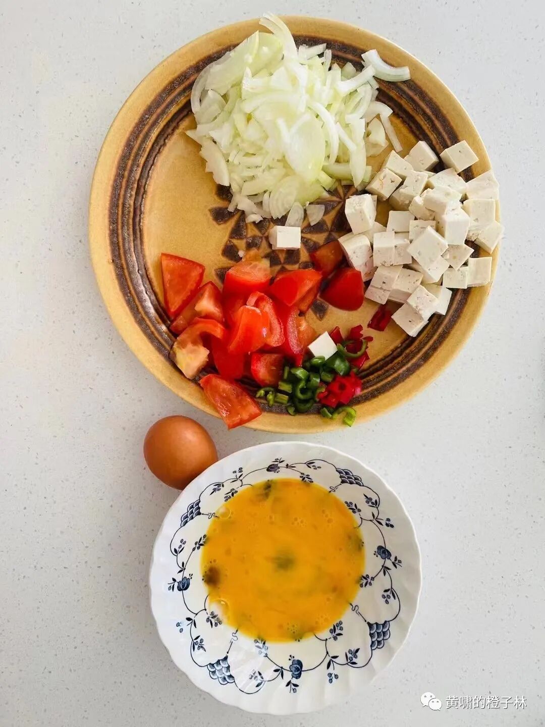 昨天烙了两张葱花饼,剩下一张多,今天老北京炒饼,正宗的应该用圆白菜,手头没有,大白菜凑合了。西红柿蛋花汤。