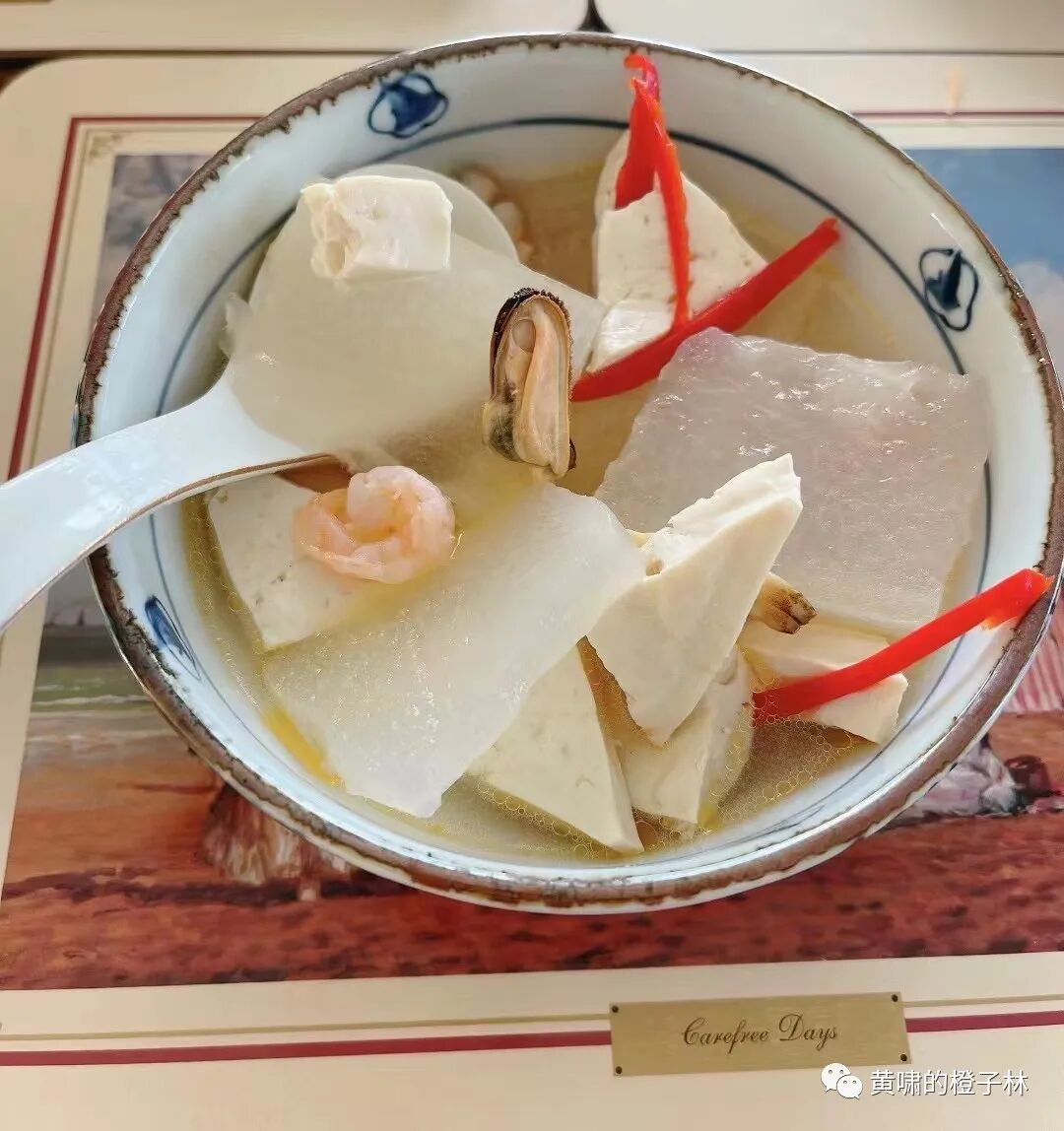 韭菜鸡蛋鲜虾锅贴&冬瓜豆腐海鲜粒汤。