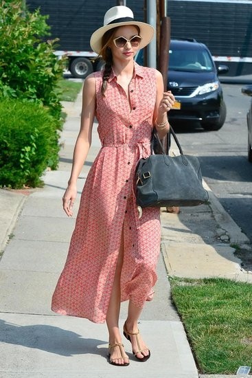 米兰达·可儿衬衫裙微敞大秀事业线晒美腿,搭配草帽和墨镜潇洒醒目,洋溢出浓浓的田园风,Balmain手袋在造型中有点略显沉闷,换成编织包会更有范儿。
