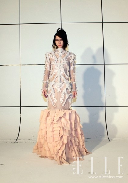 知名造型师杜杜与丁晓为其打造两款截然不同的妆容;独立设计师KAY KWOK为尚雯婕量身定制两套高级定制钉珠羽毛长裙。
