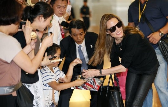 这是7月29日,朱莉在东京宣传首部导演作品电影《血与蜜之地》(In