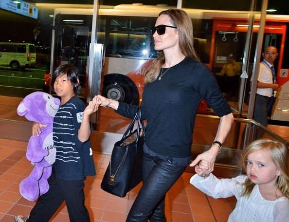 Jolie)现身东京国际机场的还有庞大的子女阵营。
