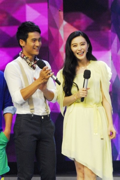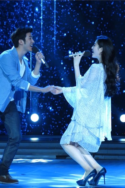 范冰冰在《快乐大本营》与李治廷演唱歌曲时身着天蓝色点点印花雪纺连衣裙,不规则层叠的设计充满灵气,飘逸的材质展现淑女气质,虽然黑色的高跟鞋搭配中规中矩,但冰冰的淑女魅力依然完美展现。