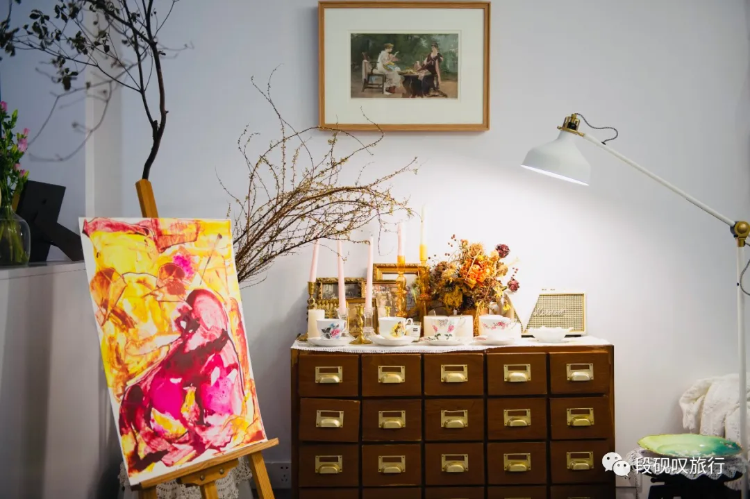 没有精致餐食,我预定特别的精神食粮,请“结伴趣旅行”最资深的女神凯瑞,带来新创作的油画,跟朋友们分享。