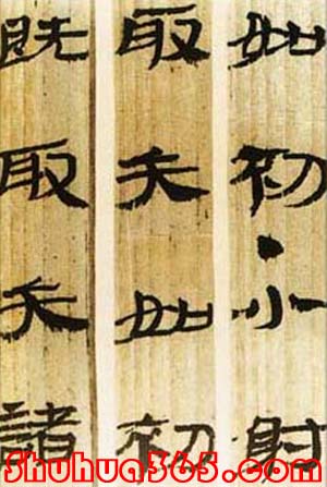 书法上称秦隶为“古隶”,汉隶为“今隶”。1975年12月在湖北云梦睡虎地秦墓中出土了竹简千余枚,上为墨书秦隶。从考古发掘出来的材料来看,战国和秦代一些木牌和竹简上的文字,已有简化篆体,减少笔划,字形转为方扁,用笔有波势的倾向。这是隶书的萌芽。西汉时,书法中隶体的成分进一步增加。长沙马王堆出土的西汉帛画《老子甲本》已有了明显的隶意。