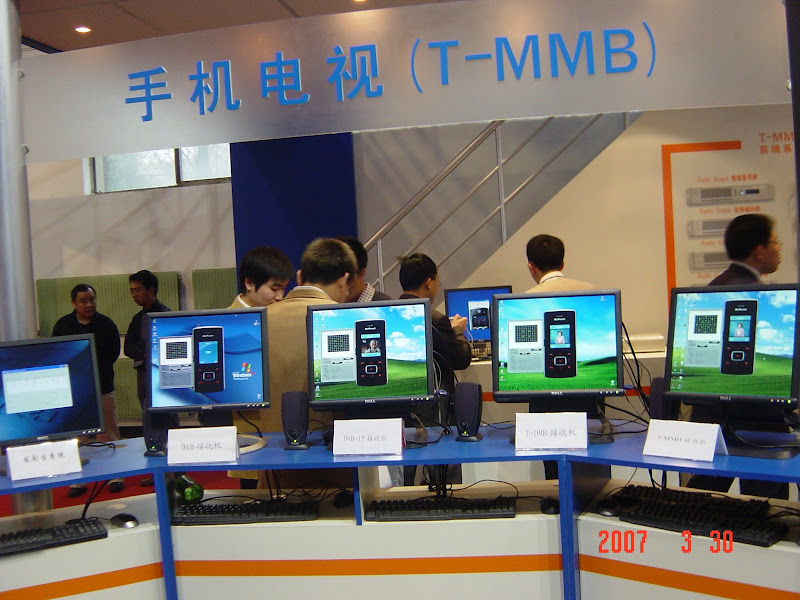 北京新岸线展示的T-MMB手机电视标准,这是通信标准委员会讨论的标准之一,这次讨论的有3个标准,还不包括CMMB,这场争论什么时候能够结束,各方博弈倒是给媒体找了不少事干。T-MMB标准能兼容目前国际上流行的多种制式,包括DAB、T—DMB、DAB-IP。为什么要兼容那么多,吸收各家之长?还是寻求更多的支持?