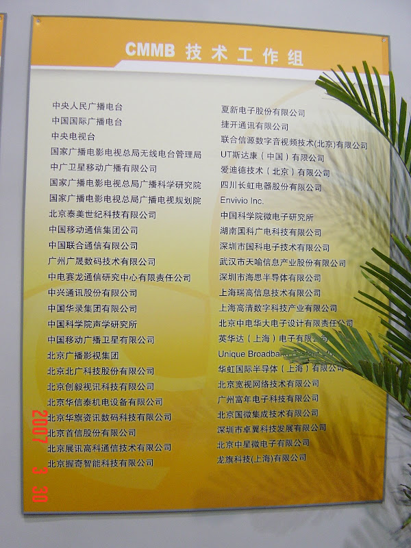 最后展示一下广电总局推出的CMMB标准技术工作组的名单。我个人觉得,STiMi/CMMB标准非常不错,成本不高、覆盖面广,而且有利于打破数字鸿 沟。我们可以从表中看到,技术工作组除了广电系统的成员外,有大量的设备商参加了标准制定,同时,中国移动和中国联通也赫赫在目。既然如此,CCSA为何 还要费神劳力去制定新标准?在制定新标准之前先商量商量行不?