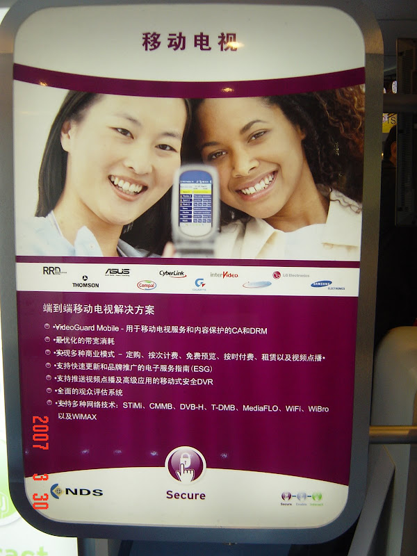 DMB是另一个大阵营,支持的厂家非常多,可惜我这里没有拍下来。正如它所描述的那样,是World DMB,但既然世界上的手机电视标准如此之多,我们何不订立一个更先进的标准。