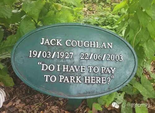 公园的草丛里,不经意处也掩映着一些铭牌。下面这块,刻着一位老人留下的话,大意是,“我这次来,还用交停车费么?” 看到这句典型的英式调侃,我不觉莞尔,又喉头一哽,心怀感伤。