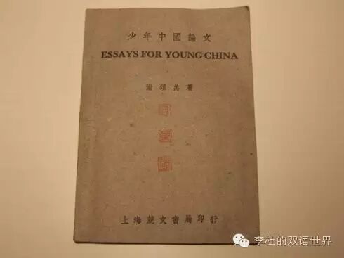 我收藏有一本1937年出版的英文《少年中国论文》(Essays for young China,似乎应翻为《少年中国论说》),编者谢颂羔,一位民国期间基督教广学会的牧师,翻译过很多英文作品。《少年中国论说》里的文章,用浅显英文讲述中国的一切,爱国之情溢于言表。