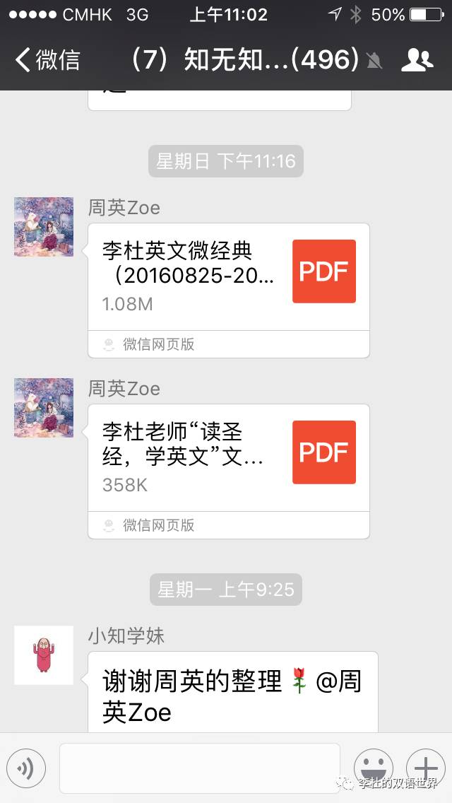若你身边有英语爱好者,请广而告知,欢迎大家关注“知无知”公号,在公号里回复“英文经典群”,“小知学妹”便会拉你进群。(请注意不要在我这里回复啊)