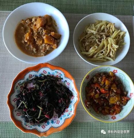 我们生活规律,做饭便是戴安娜的主要任务。戴安娜喜欢烹饪,武汉式的炒菜很快便上手了,尽管不算地道,也比出去吃粤菜强。炒红苋菜,青椒炒肉末,土豆丝炒肉末。另一个是独创的南瓜肉末糊糊,汉式与菲律宾式结合。