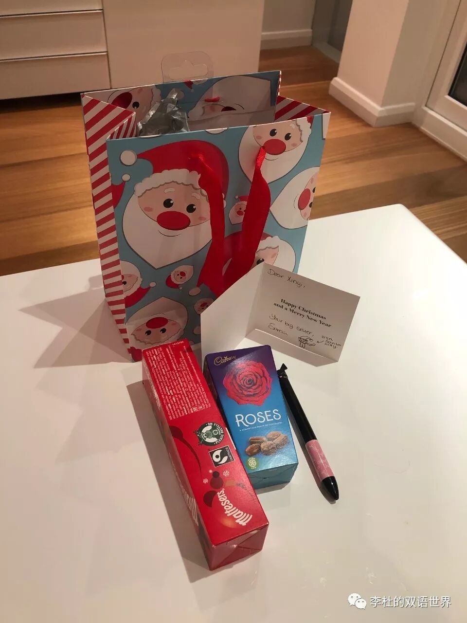 圣诞节临近。昨天放学,心一欢天喜地,说收到了大姐姐的圣诞礼物。打开小袋子,巧克力,小文具琳琅满目。