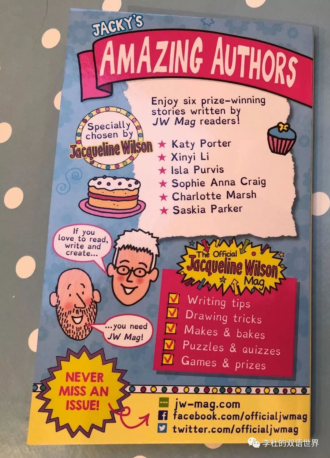 作为奖励,心一获得一本Jacqueline Wilson亲笔签名的新书,当时尚未正式出版发行,以及Jacqueline Wilson杂志一年的订阅。Jacqueline Wilson亲笔写下名字Xinyi Li,作为小粉丝,这已是无上荣誉了。