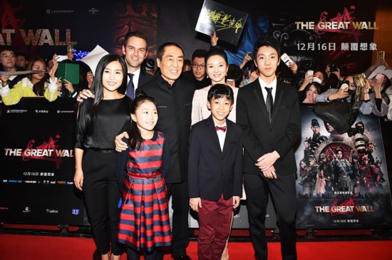 12月6日下午,由张艺谋执导的贺岁饕餮巨制《长城》在北京举行首映红毯仪式。马特?达蒙、景甜、刘德华等中外豪华内容纷纷亮相,张艺谋为了给新片造势还拖家带口一家七口齐上阵走红毯,顿时抢走了众多主演的风头,大家的注意力都被老谋子的一大家子成员给吸引了。