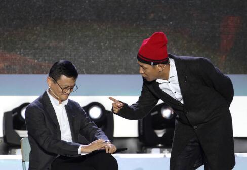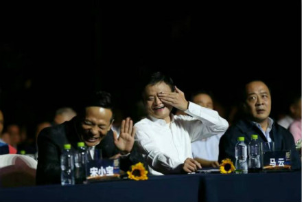 在这些明星当中,名气最小的的无疑是小品演员宋小宝,然而在当晚的颁奖典礼中最瞩目的要算宋小宝了,宋小宝不仅座位紧挨着马云,还和马云同台演了一场小品,压轴出场。小品中宋小宝伸手对马云“一通指教”,马云则乖乖“听讲”,整个小品笑料百出,逗得现场观众前俯后仰。
