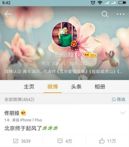 近日,陈思成出轨闹得满城风雨,另一半佟丽娅则始终没有正面回应,保持沉默,8日,佟丽娅终于发了一篇只有七个字的微博“北京终于起风了”。但就是这几个字,却引来数万网友的一片心疼。原因大约就是因为最近老公陈思成因为私生活频频上热搜吧。