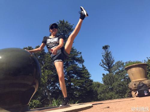 她配文:“户外健身,备战话剧《武则天》澳洲巡演。”照片中的她一脚朝天蹬,柔韧性夸张,让人不由猜测话剧中会不会有这样的高难度动作。