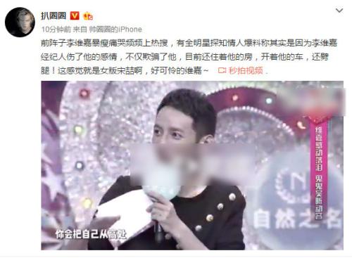 3月15日,李维嘉一条关于“经纪人”的话题上了微博热搜。据全明星探知情人说,李维嘉暴瘦和痛哭的原因可能与经纪人有关。这位知情人透露,李维嘉遭经纪人劈腿,骗了他的感情,目前还住着他的房,开着他的车。