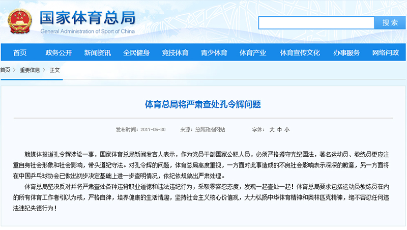不得不说,孔令辉这次是真摊上大事了,而且这次谁也救不了他。因为当前举国上下正保持反腐高压态势,体育部门也不例外,体育总局在声明中也表示坚决反对并将严肃查处各种违背职业道德和违法违纪行为,采取零容忍态度,发现一起查处一起。