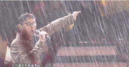 天空不作美,谭咏麟在唱到最后两首歌的时候。天空突然下起了暴雨,雨水像瀑布一样哗啦哗啦的下起来了。这时候谭咏麟和舞蹈演员仍在暴雨中坚持演出,发型妆容虽尽毁,但现场歌迷热情却突然被艺人的坚持而点燃了。
