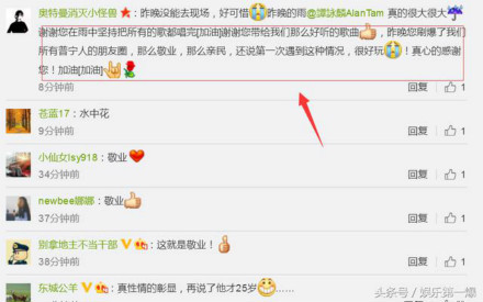 看到谭校长如此敬业,现场歌迷纷纷心疼起校长(谭咏麟):“校长辛苦了”、“心疼校长,都一把年纪了”,看到校长用毛巾擦雨水,这么乐观健康又敬业!但是下次还是打伞把,以防感冒!赶紧换衣服洗热水澡!甚至还有人质疑道:“工作人员在干嘛,也不知道送把伞上来”。