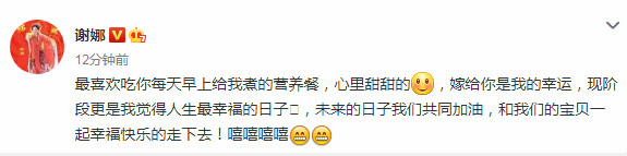 随后谢娜甜蜜回应:“最喜欢吃你每天早上给我煮的营养餐,心里甜甜的,嫁给你是我的幸运,现阶段更是我觉得人生最幸福的日子,未来的日子我们共同加油,和我们的宝贝一起幸福快乐的走下去!嘻嘻嘻嘻”!