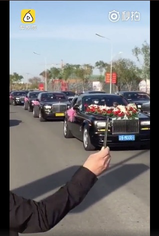 从曝光的现场视频来看,豪华婚车队几乎把真个路面都占领了,从路的这头到路的那头,清一色的劳斯莱斯,场面只壮观让人惊叹不已。