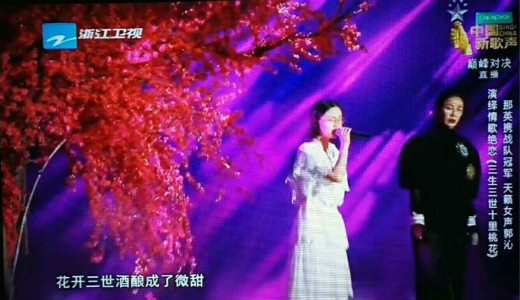 在昨晚的鸟巢总决赛中,郭沁先与导师那英合唱了《三生三世十里桃花》,第二轮又第三个上场,演绎了婉转的《但愿人长久》,力压其他选手率先成为冠军候选人。