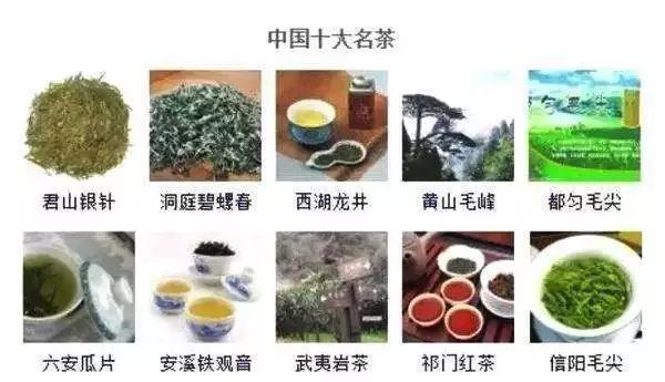 http://p0.qhimgs4.com/t01c42d99b7d3482ba5.jpg27、十大名茶:西湖龙井(杭州)、碧螺春(江苏)、信阳毛尖(信阳)、君山银针(岳阳)、六安瓜片(安徽)、黄山毛峰(安徽)、祁门红茶(安徽)、都匀毛尖(贵州)、铁观音(福建安溪)、武夷岩茶(福建崇安)
