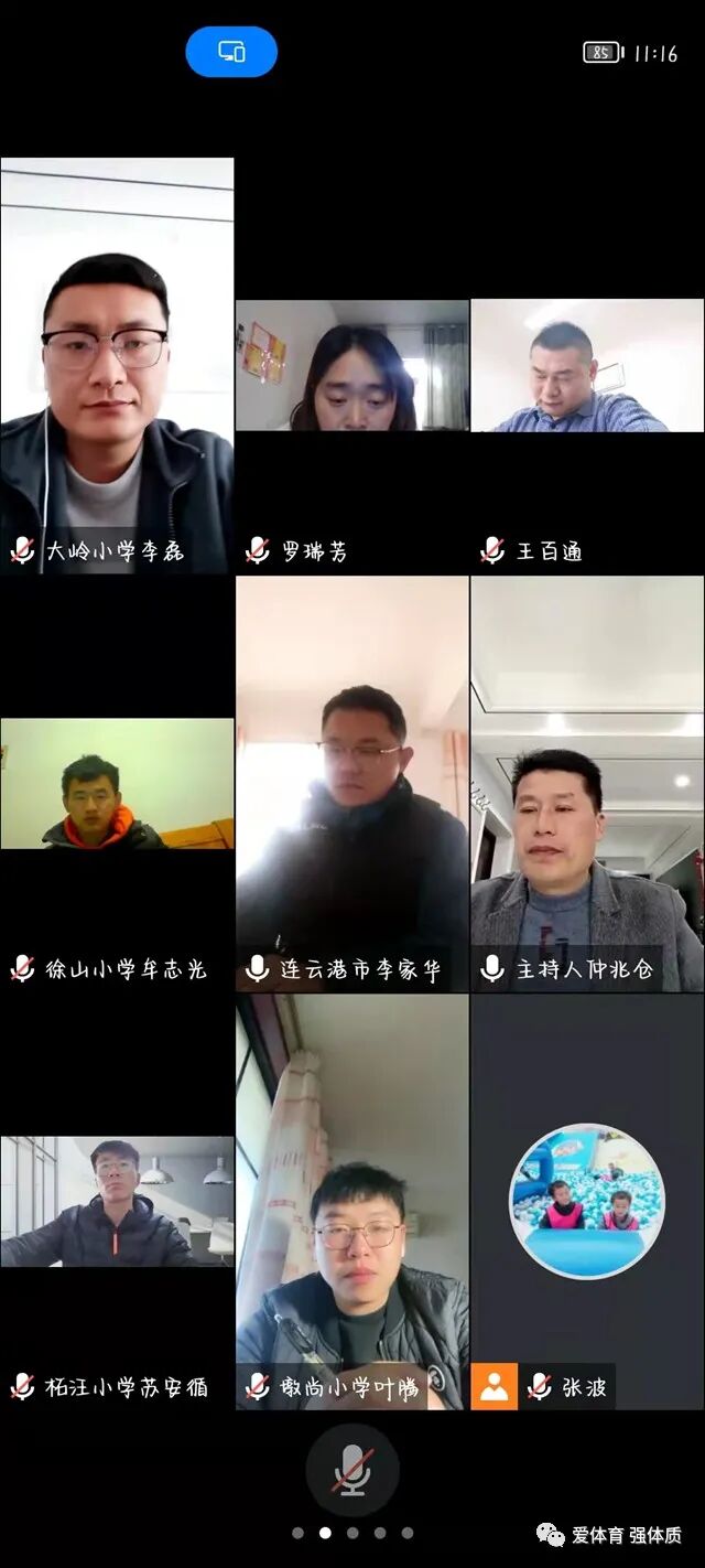 工作室成员就仲老师的工作布置和发言以及近期学生居家锻炼的情况进行了深入的研讨。门河小学李家华、汇文双语罗瑞芳、龙和小学马驰、墩尚小学叶腾、徐山小学牟志光、和安小学夏歌等老师积极发言提问,相互交流探讨,碰撞思维火花。