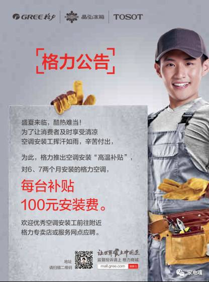 今年6月16日,格力再次宣布,2017年6月1日至7月31日,每台格力空调安装费在原有补贴基础上再增100元。似乎也没有引起其他品牌的跟风,难道对这么重要的行业行为,都视而不见吗?