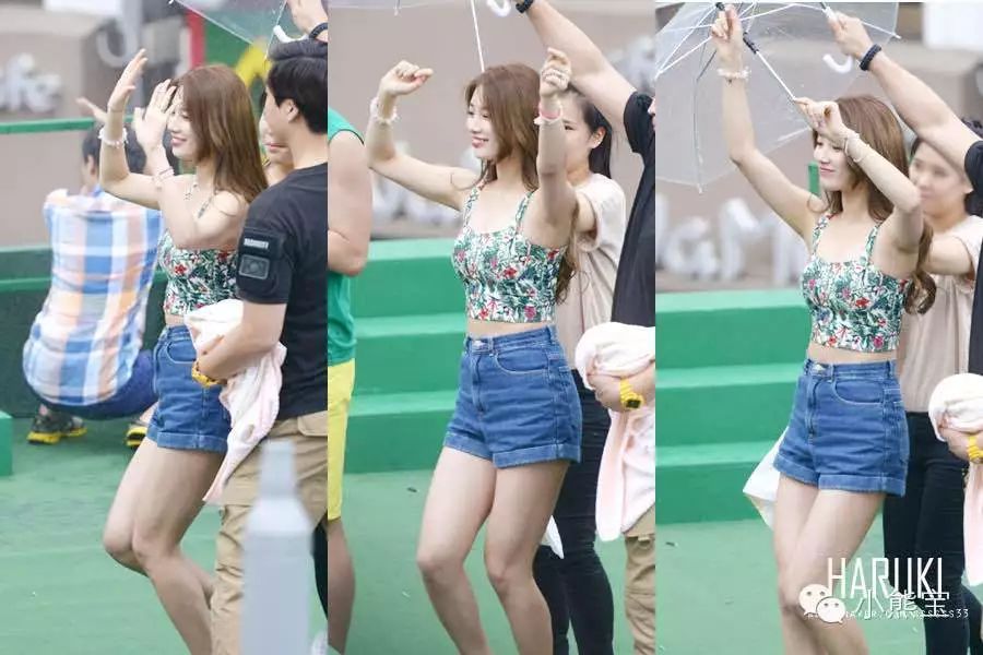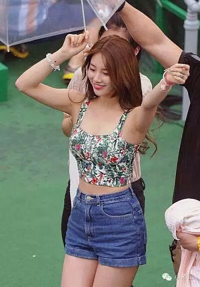 而明星中把抹胸装穿得最美的还是秀智。一条高腰牛仔热裤搭配撞色夏威夷风吊带抹胸,清凉又亮丽。熊宝很喜欢她的这身装扮,虽然平时不是很关注秀智。