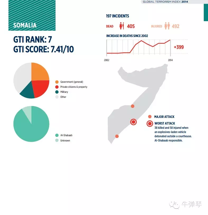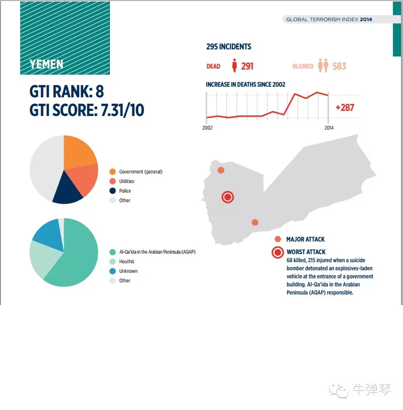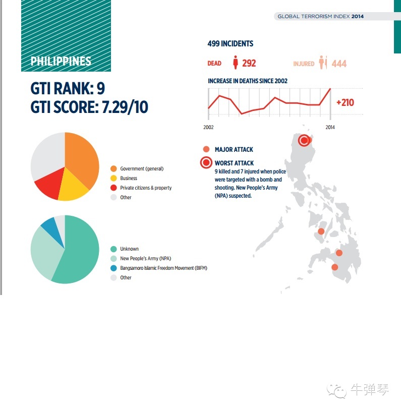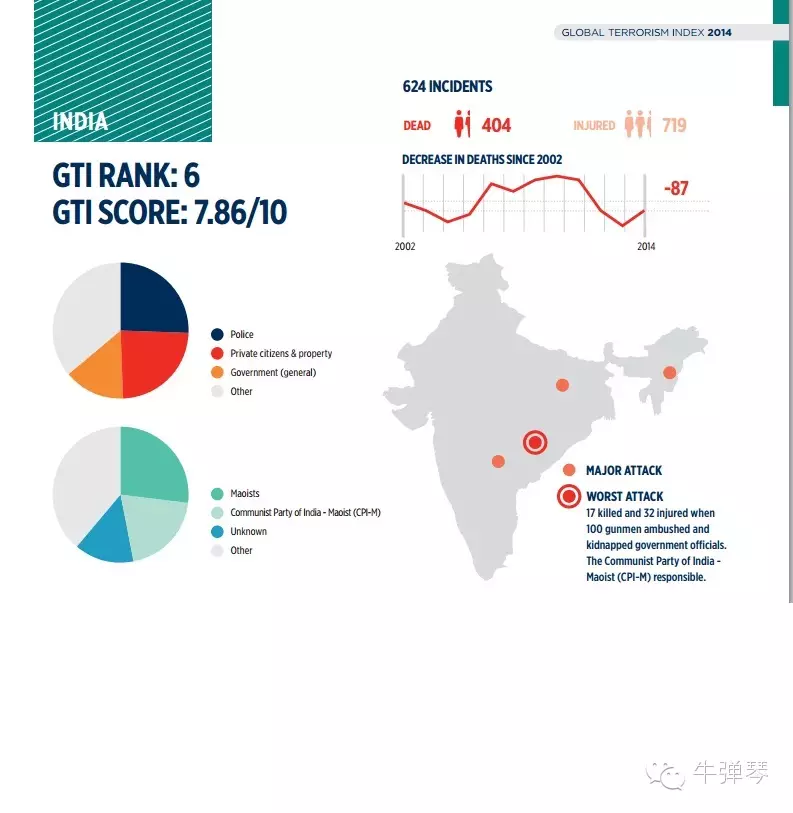 值得注意的是,这十大最危险国度,不是仅按照恐怖活动受害者人数来定的,而是按照恐怖指数来划分的。因此,印度在索马里前面,也门在菲律宾前面。