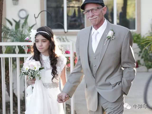 美国加州一名癌症晚期的父亲由于等不到女儿长大出嫁,于2014年3月携着11岁女儿女孩乔西的手走红地毯。这场“婚礼”于3月14日在他们家的后院举行。短短72小时之内,他们收到小区大批好心人的捐助:礼服、钻戒、蛋糕、礼品、还有一名牧师全力相挺。但现场少了最重要的男主角:新郎,唯有一位长日将尽的父亲,牵着女儿完成这场“婚礼”。