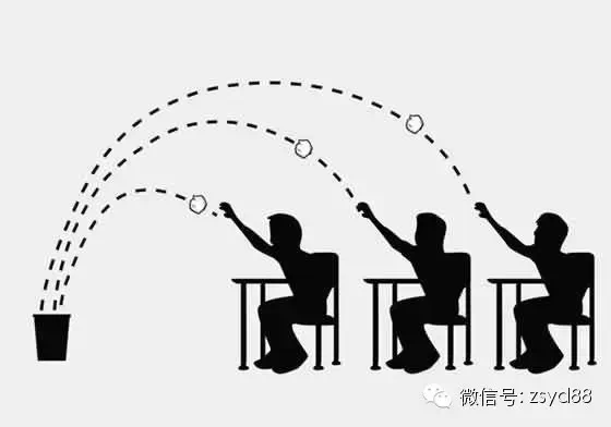 ▼教室后排的学生立刻开始抗议:这不公平!我们离垃圾桶这么远,前排的同学离垃圾桶那么近!