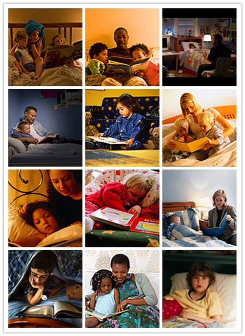 在西方的电影中,经常会出现一个经典的镜头:温馨的灯光中,一个小朋友躺在床上,甜蜜地闭着眼睛,嘴角带着满足的微笑。妈妈(或爸爸)坐在床头,深情而轻声地读着一本童话书……孩子甜甜地睡去,妈妈(或爸爸)低头吻一吻孩子的额头,轻轻地关上台灯,蹑手蹑脚地走出房间……