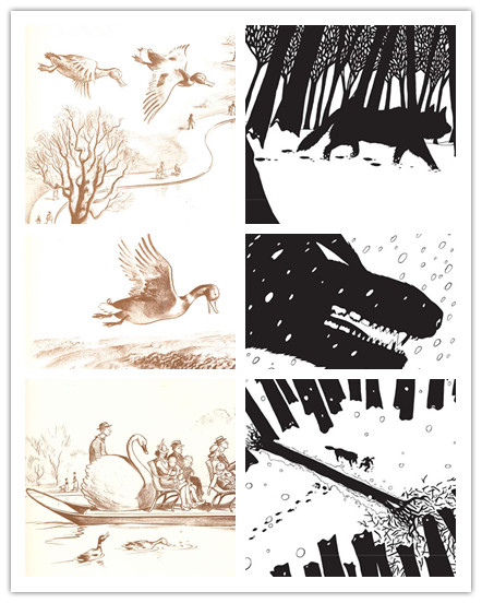 而《狼来了》(法国安托尼·吉约佩)中,一个少年在雪夜遇到一只狼,本来是一件惊险的事情——狼扑过来了,却救了少年。有些人会说,这会不会混淆了孩子对野兽的认识呢?我却认为,孩子会渐渐地从科普的学习中,获得每种动物特性的知识。但孩子也应该知道,这个世界上,动物,远远不是对人最坏的物种。