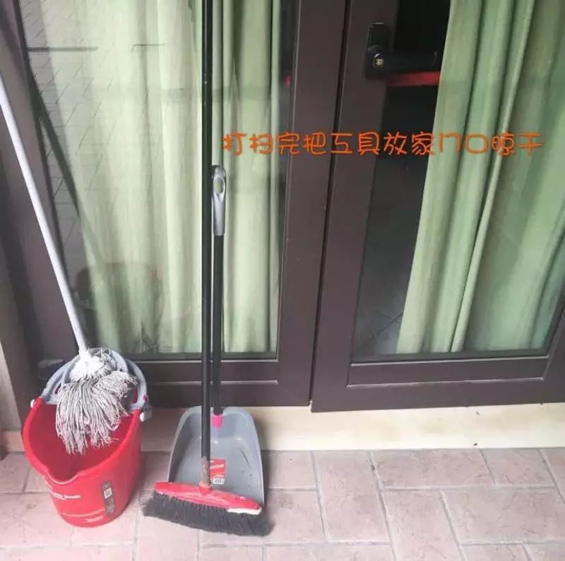 ☝孩子们自己动手打扫房间。根据不同的材质的地板,使用的打扫工具不一样。
