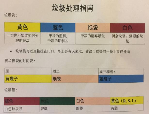 12、学校将提前给同学们讲解垃圾分类的方法与实施细则。同时,房东将提供相应的垃圾袋并帮助与检查学生是否按照正常的方法分类垃圾。(垃圾分类是中国教育特别缺失的,我们在下文将详细讲,希望有一天在中国能够看见垃圾分类真正实践起来,我们为这个愿望做知识准备吧。童书妈妈注)