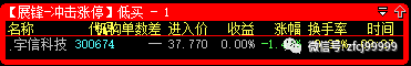 1月17日9:27分冲击涨停预警的是300674宇信科技(低买),开盘价37.77元,当日最低价36元,收盘价37.15元,暂取交易日收盘价37.15元计算,整体盈利达到-1.64%;