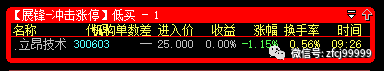 1月16日9:27分冲击涨停预警的是300603立昂技术(低买),开盘价25元,当日最低价25元,收盘价7.82元,暂取5个交易日最高点计算,目前价格是30.60元,整体盈利达到+22.40%;