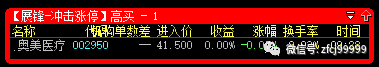 2月5日9:27分冲击涨停预警的是002950奥美医疗(高买),开盘价41.50元,当日最低价40元,收盘价45.68元,暂取5个交易日最高点计算,最高价格是55.28元,整体盈利达到+33.20%。(41.06元CYC1线处完全买的到)