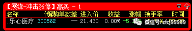 2月6日9:27分冲击涨停预警的是300562乐心医疗(高买),开盘价21.43元,当日最低价21.43元,收盘价22.25元,暂取5个交易日最高点计算,目前价格是22.20元,整体盈利达到+3.59%。(21.60元CYC1线处完全买的到)
