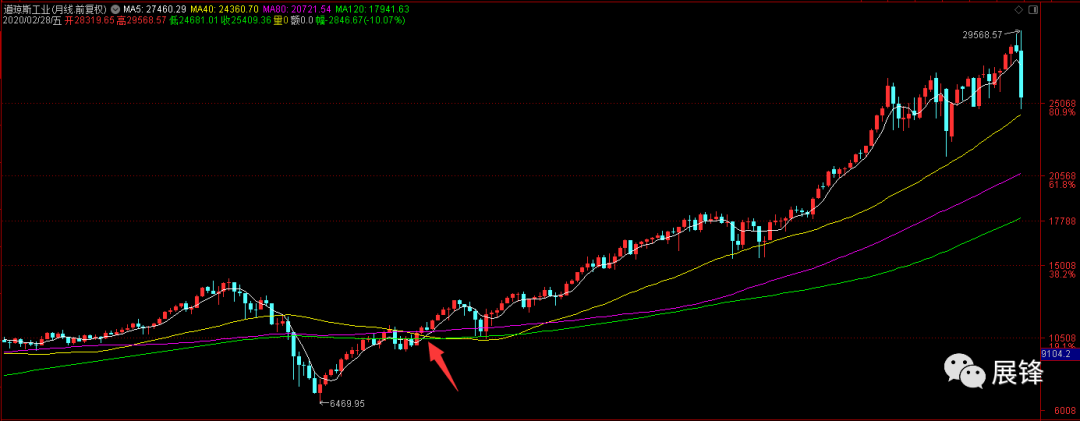 10月线不被有效跌穿,美股的牛市就依然能够延续。2018年12月那根月K线我就这样讲过,现在依然这样讲,有效跌破后另当别论!