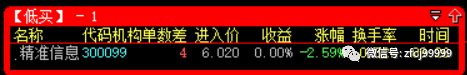 5月18日9:26分冲击涨停预警的是300099精准信息(低买),开盘价6.02元,当日最低价6元,收盘价6.04元,暂取5个交易日最高点计算,最高价格是6.07元,整体盈利达到+0.83%。