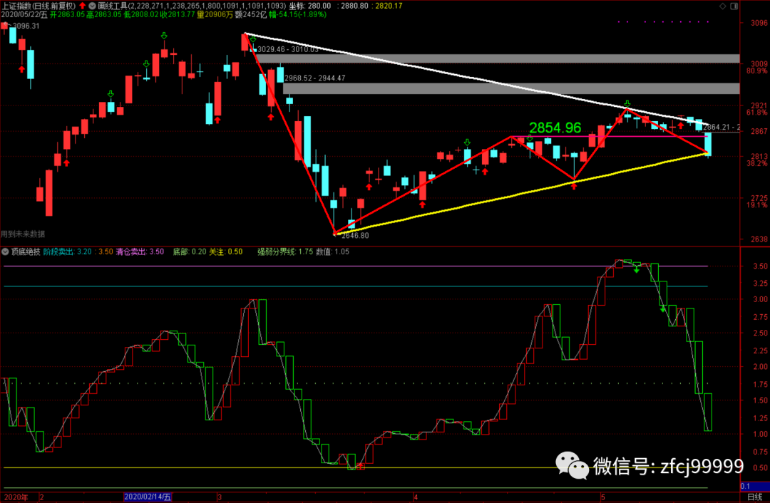 总结:5月18-22日大盘表现非常不好,不但跌破了2954的颈线位,而且还跌破了2820的上升趋势线,短期如果没有大利好配合的话,只能继续采取观望,下达2877有一定支撑,在下跌趋势的时候,尽量减少操作,但趋势出现逆转之后,再考虑重新进场不迟!