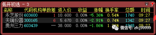 6月17日9:26分冲击涨停预警的是300165天瑞仪器(低买),开盘价5.67元,当日最低价5.46元,收盘价5.48元,暂取5个交易日最高点计算,最高价格是5.58元,整体亏损达到-1.59%。